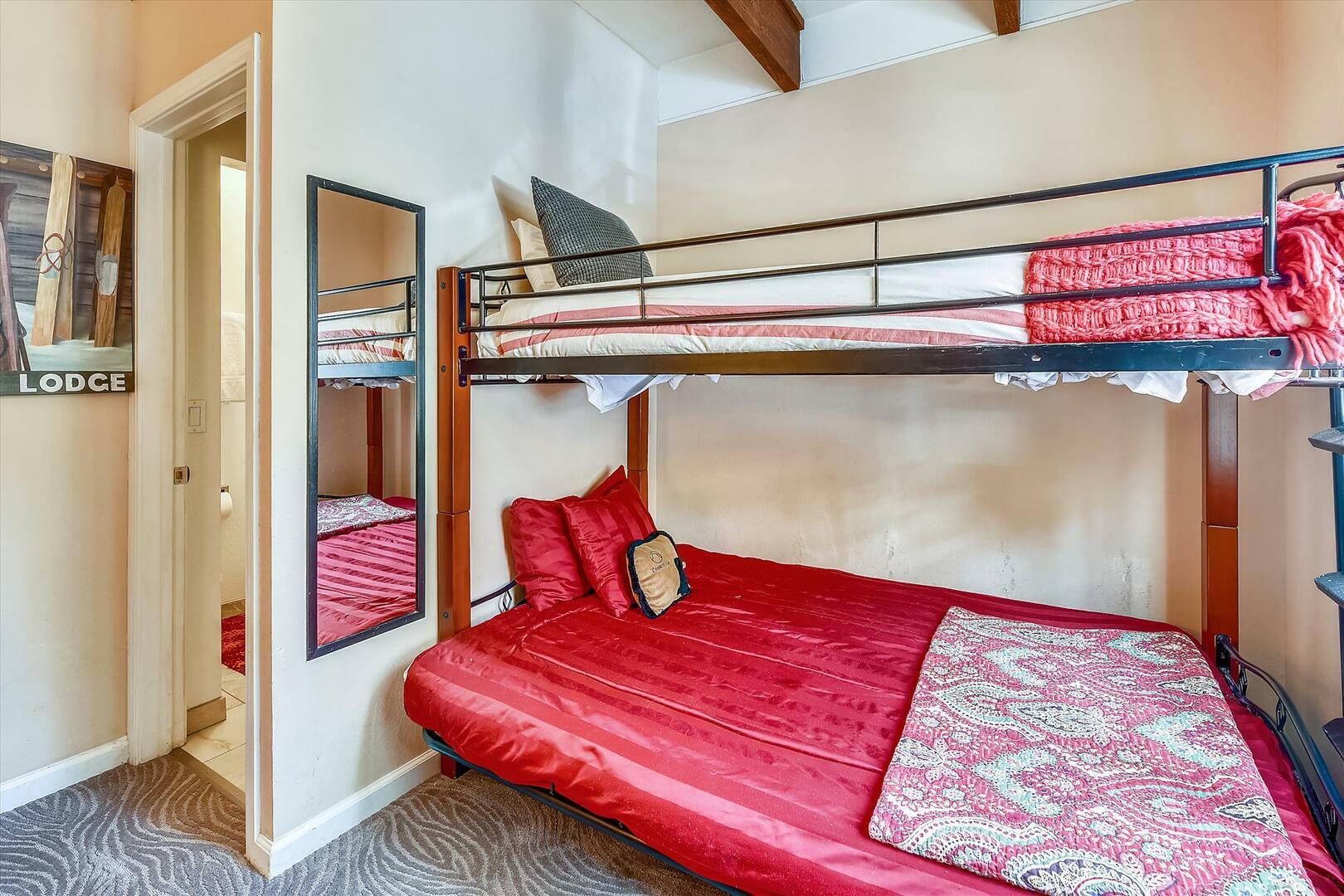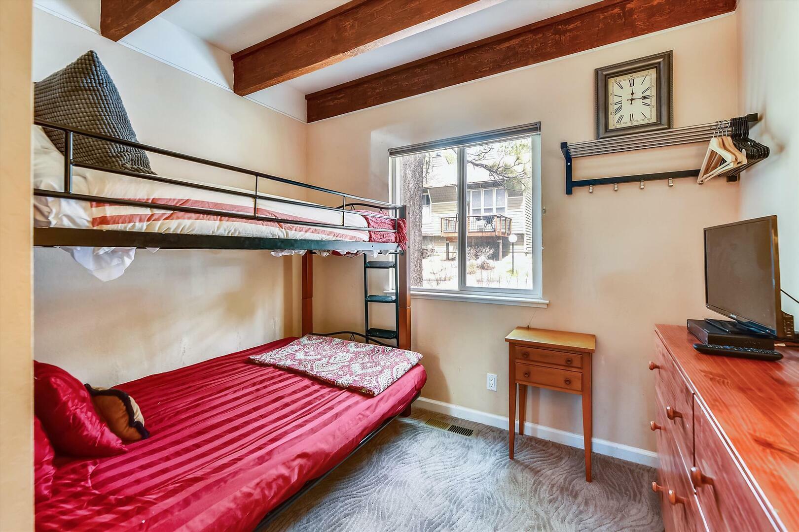 Welcome to this cozy and inviting home located in the beautiful Tahoe City, CA. This charming house features 1 bedroom plus loft and 2 bathrooms, providing ample space for relaxation and comfort. The full kitchen is perfect for those who love to cook and entertain, offering all the necessary appliances and utensils. The loft has a queen with an en suite bath. The bunk room on the entry level has a twin over full. The bunk bed adds a touch of versatility, making it ideal for small families.
